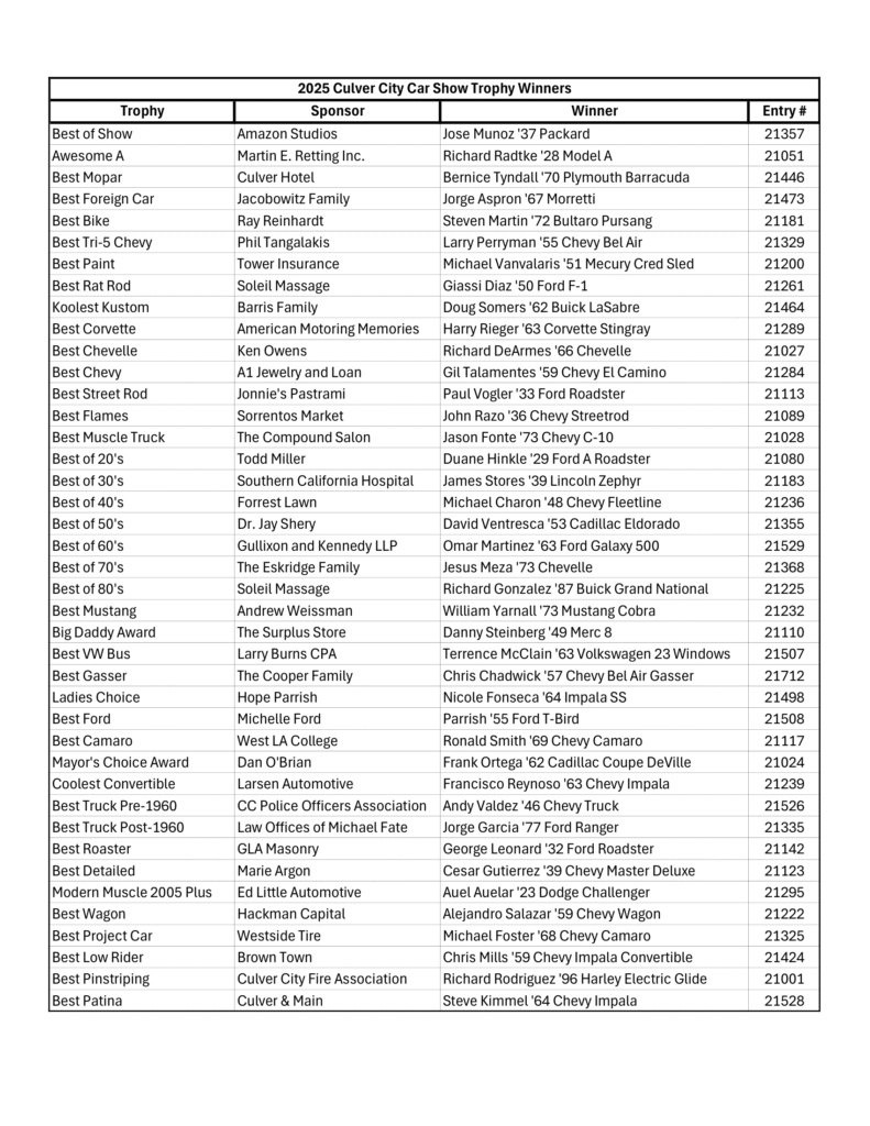 There will also be free parking in the lots at Veterans Park with Culver City shuttle buses – picking up and dropping off in front of the park at Culver Blvd and Overland every 15-20 min.